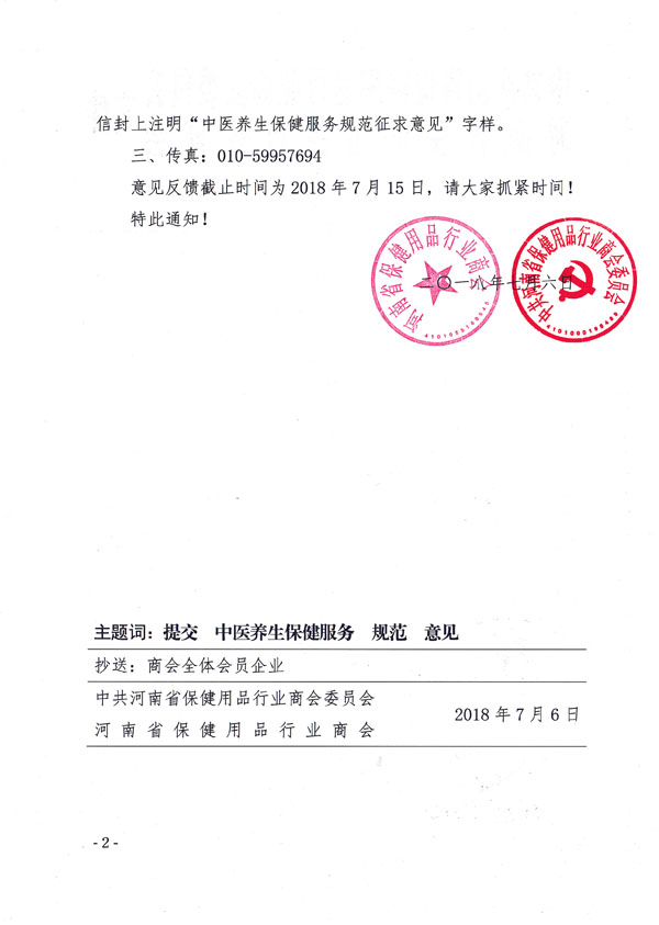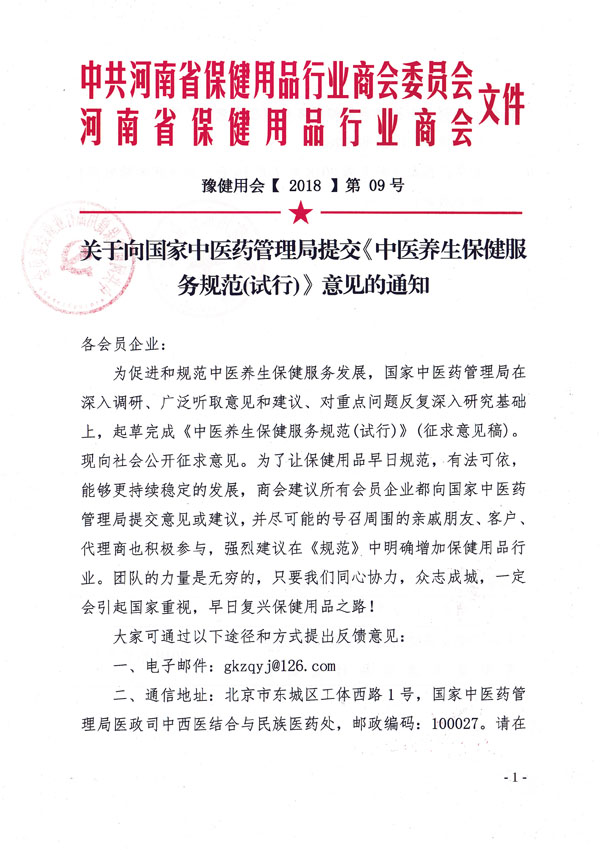 为促进和规范中医养生保健服务发展,国家中医药管理局在深入调研、广泛听取意见和建议、对重点问题反复深入研究基础上,起草完成《中医养生保健服务规范(试行)》(征求意见稿)。现向社会公开征求意见。为了让保健用品早日规范,有法可依,能够更持续稳定的发展,商会建议所有会员企业都向国家中医药管理局提交意见或建议,并尽可能的号召周围的亲戚朋友、客户、代理商也积极参与,强烈建议在《规范》中明确增加保健用品行业。团队的力量是无穷的,只要我们同心协力,众志成城,一定会引起国家重视,早日复兴保健用品之路!