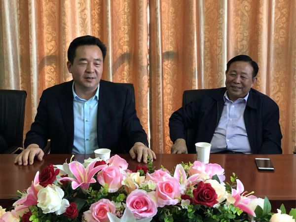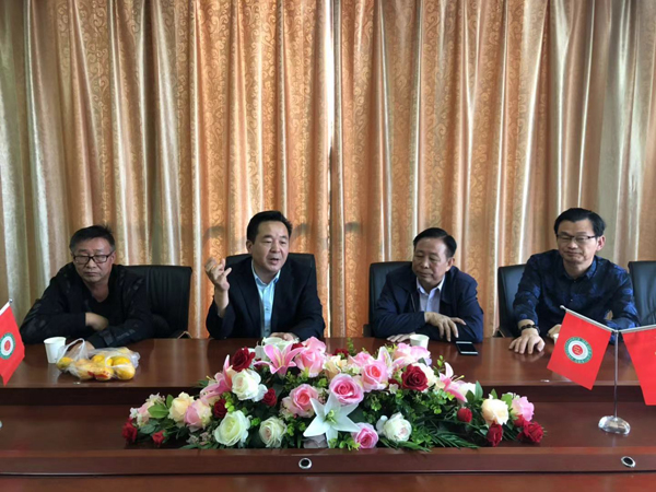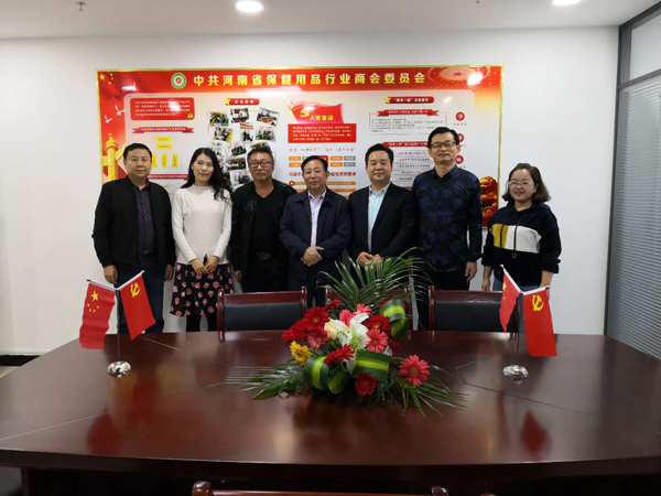 2018年10月18日下午时代传媒集团董事长、省报告文学学会会长、省孝文化促进会会长张富领、时代报告杂志社党支部书记、副总编孟玉玲、时代报告杂志社编辑部主任董海燕、时代报告杂志社发行部主任李百立前来商会参观与学习交流,商会党委书记岳延安、商会副会长兼秘书长黄承斌、商会副会长陶玉锦热情接待了参观组一行,并围绕党建工作,产业帮扶等问题进行了深入交流,最后双方在商会党委办公室友好合影留念。