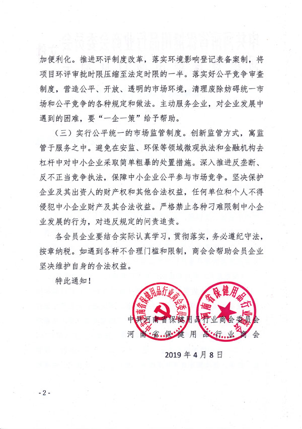 各会员企业要结合实际认真学习,贯彻落实,务必遵纪守法,按章纳税。如遇到各种不合理门槛和限制,商会会帮助会员企业坚决维护自身的合法权益。