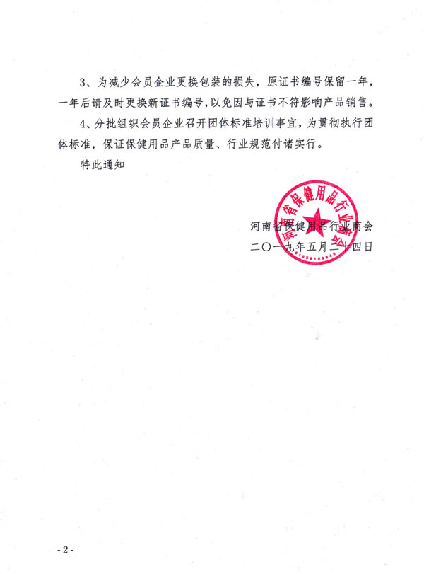 3、为减少会员企业更换包装的损失,原证书编号保留一年,一年后请及时更换新证书编号,以免因与证书不符影响产品销售。