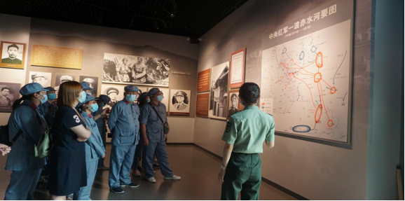 全体员工身着红军军装,怀着崇敬又激动的心情,瞻仰了两馆内革命先烈使用过的陈列物品,认真聆听了讲解员从第五次反围剿失利到二万五千里长征每个阶段的悉心讲解,观摩了战斗场景、宣传标语、会议精神等等,用心学习了红军“坚韧不拔、自强不息、勇往无前”的伟大长征精神。通过重温党史,学习红色精神,让我们都深深体会到了只有中国共产党才能救中国,只有秉承艰苦奋斗的精神才能实现中华民族伟大复兴。