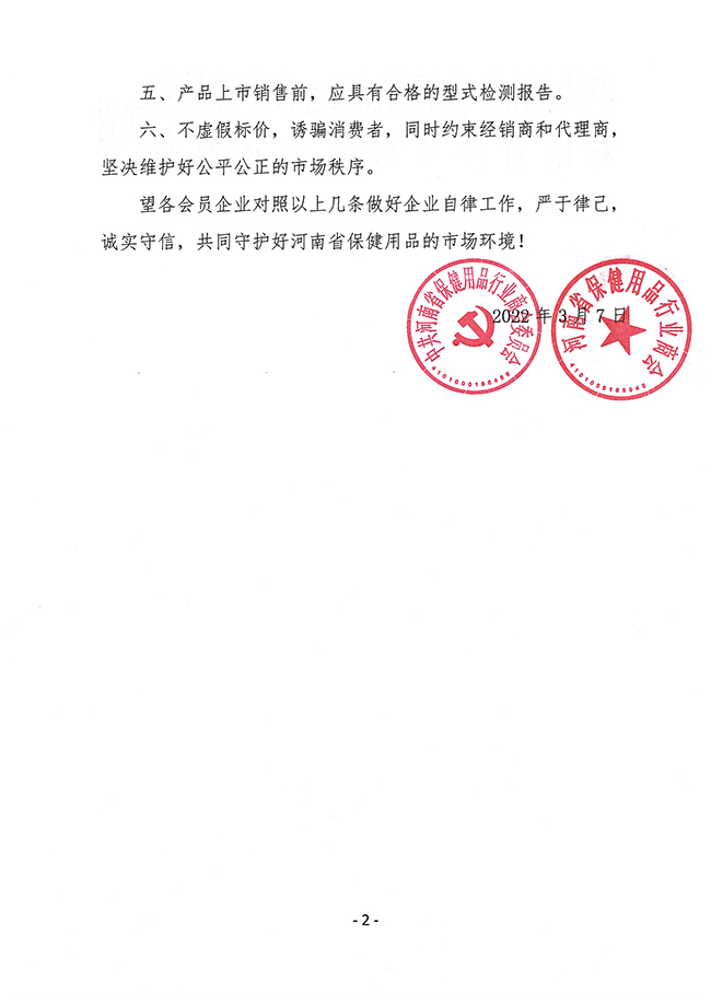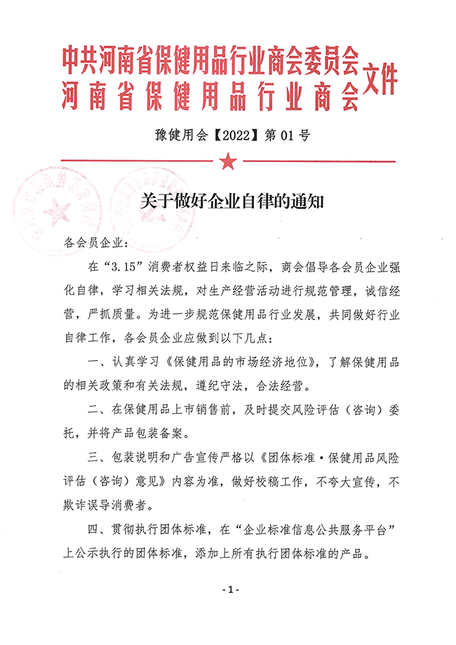 望各会员企业对照以上几条做好企业自律工作,严于律己,诚实守信,共同守护好河南省保健用品的市场环境!