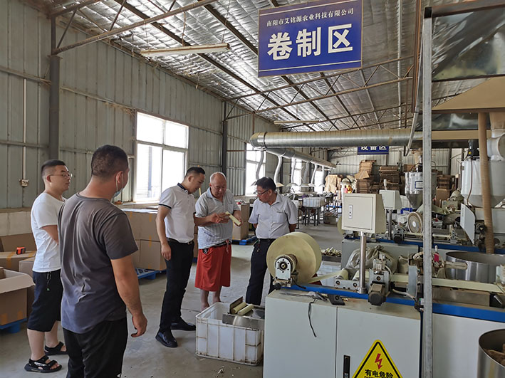 (图:视察南阳市艾铭源农业科技有限公司生产车间)