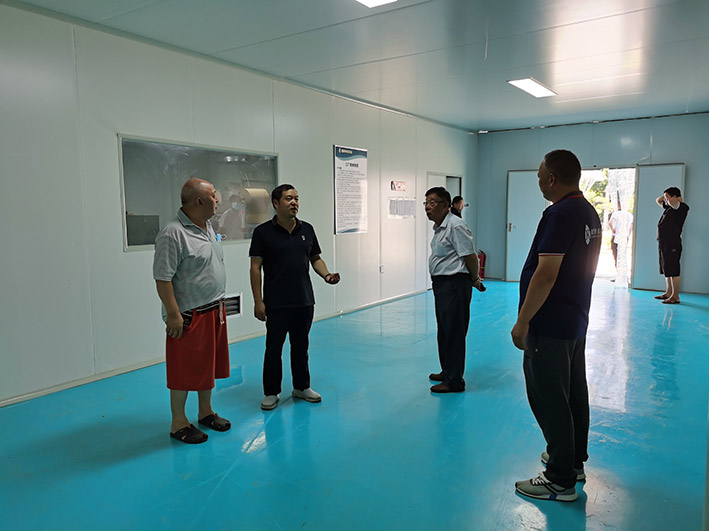 (图:视察南阳市健康快迅药业有限公司生产车间)
