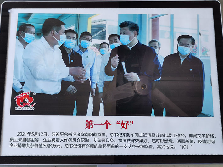 (图:习总书记考察南阳药益宝艾草制品有限公司)