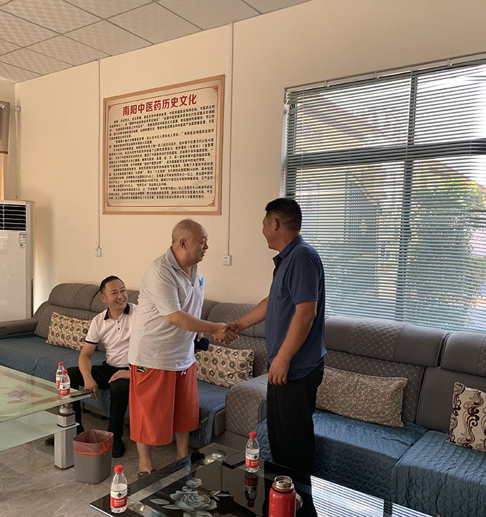 (图:商会会长与南阳药益宝艾草制品有限公司负责人会谈)