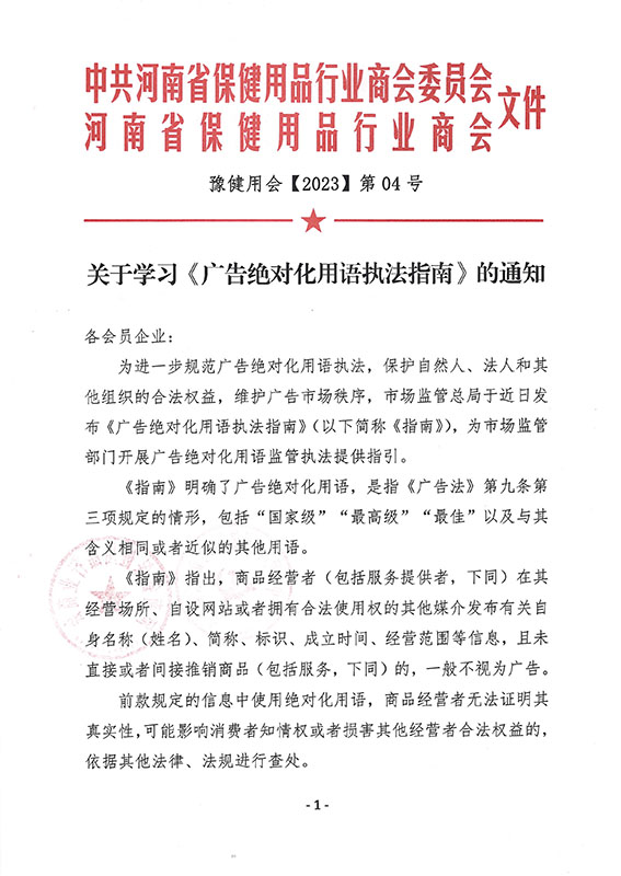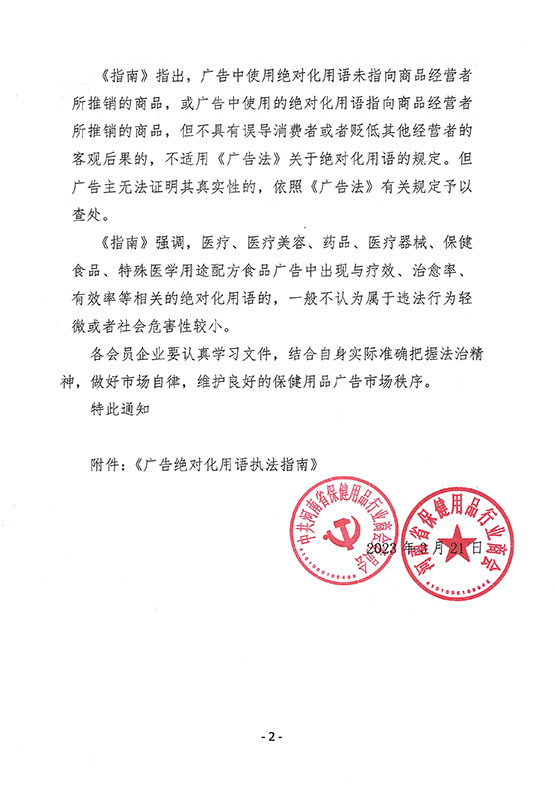 各会员企业要认真学习文件,结合自身实际准确把握法治精神,做好市场自律,维护良好的保健用品广告市场秩序。