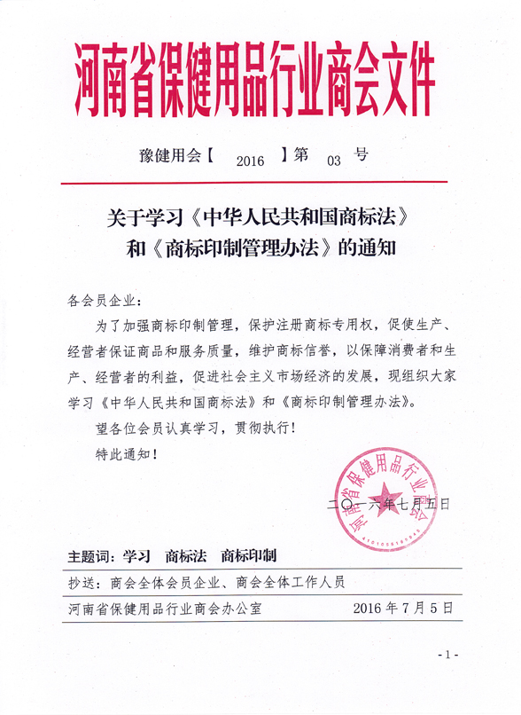 为了加强商标印制管理,保护注册商标专用权,促使生产、经营者保证商品和服务质量,维护商标信誉,以保障消费者和生产、经营者的利益,促进社会主义市场经济的发展,现组织大家学习《中华人民共和国商标法》和《商标印制管理办法》。