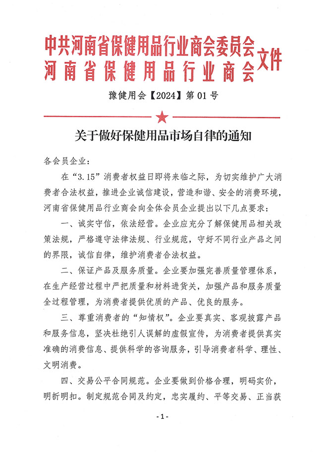 关于做好保健用品市场自律的通知