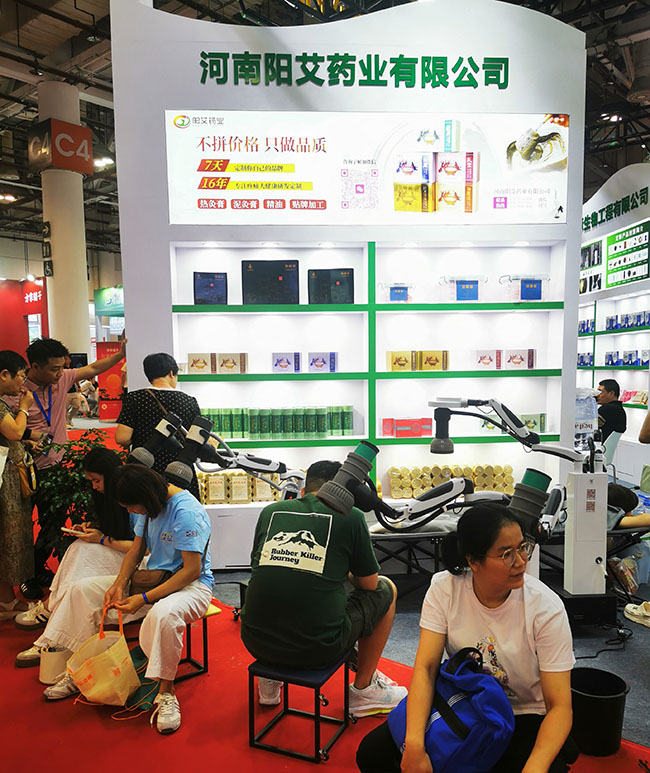 本次参展企业包括河南阳艾药业有限公司、洛阳新坐标生物工程有限公司、永城市还金堂健康产业有限公司、河南经元药业有限公司、河南善耘药业有限公司、河南医圣扶阳堂医药集团有限公司等。参展产品涵盖贴剂、膏剂、外用液体、粉剂、艾灸产品、松烟墨等多个细分品类,呈现出“科技赋能传统”的健康新理念。