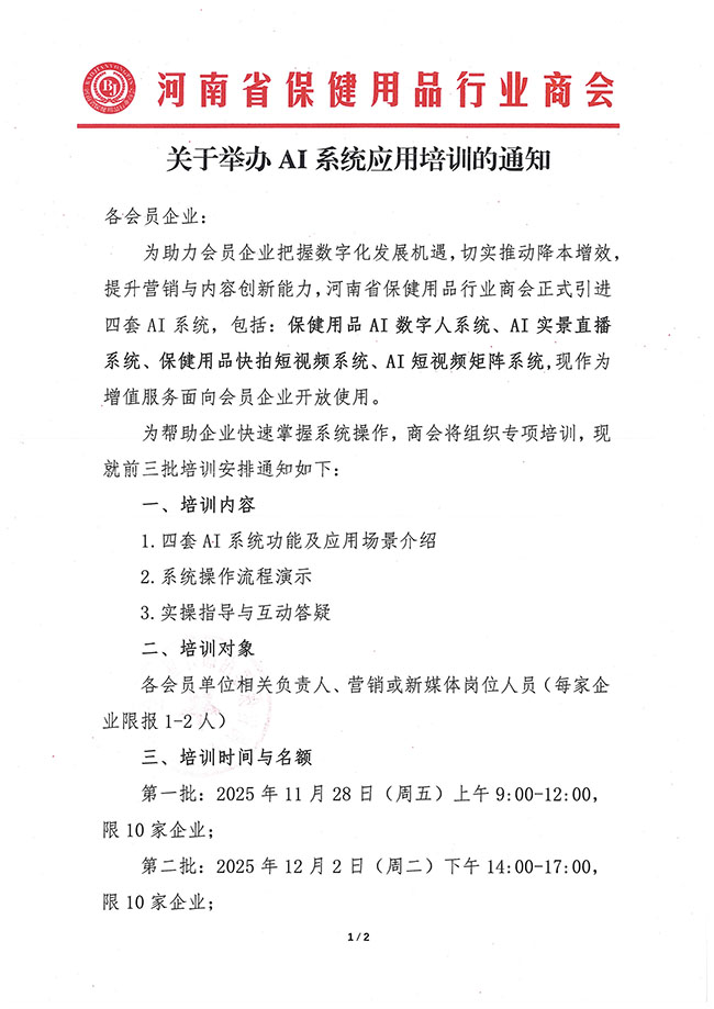 关于举办AI系统应用培训的通知
