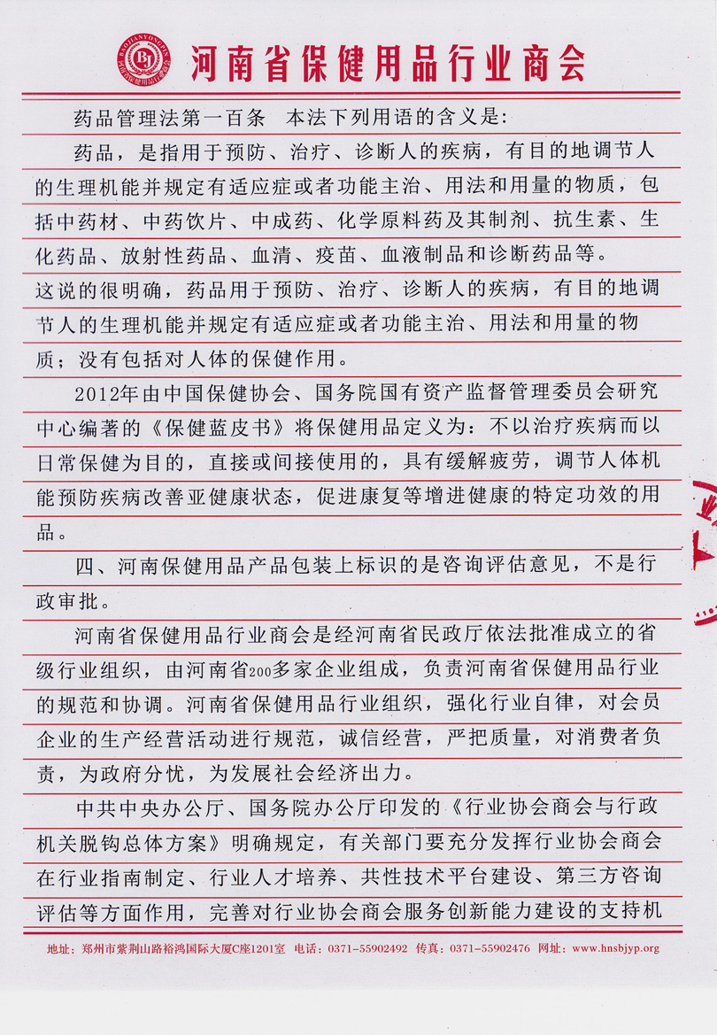 四. 河南保健用品产品包装上标识的是咨询评估意见,不是行政审批。